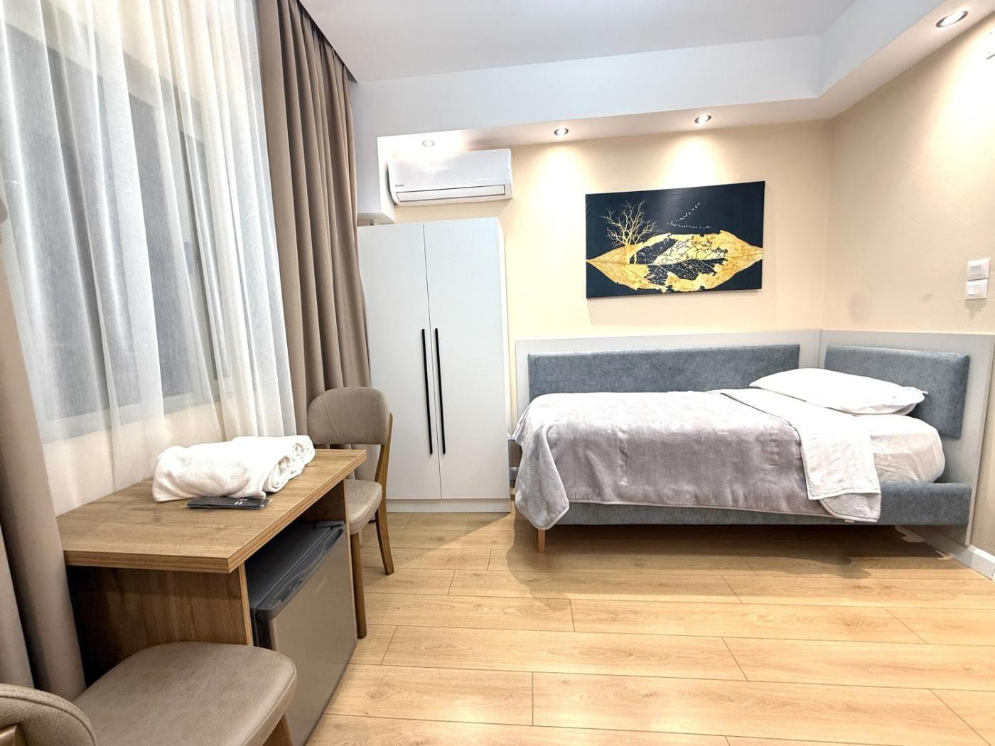 King Room. Offering free toiletries, this double room includes a shared bathroom with a shower, a hairdryer and slippers. The air-conditioned double room offers a flat-screen TV, a tea and coffee maker, a wardrobe, parquet floors as well as city views. The unit has 1 bed. ;
